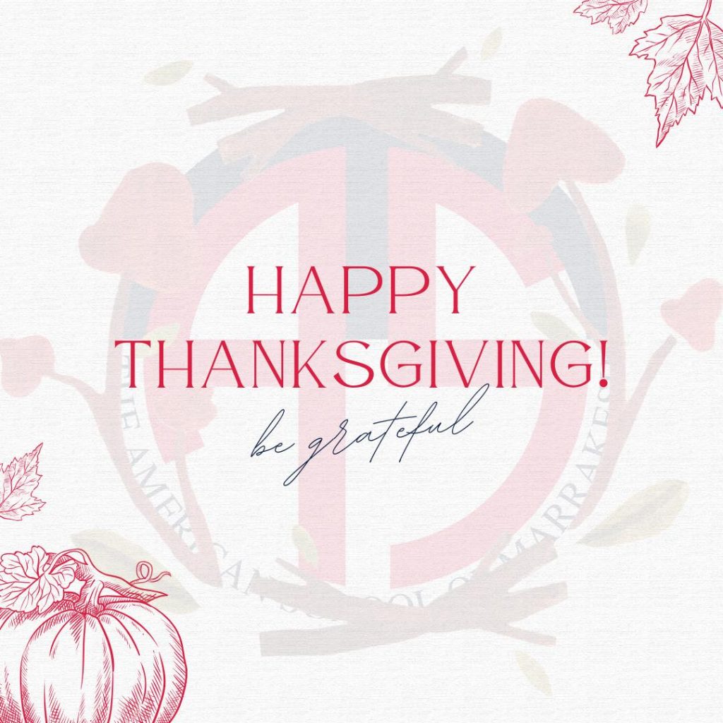 Wishing the American School of Marrakesh community a warm and joyful Thanksgiving filled with gratitude and togetherness 🍁🦃.